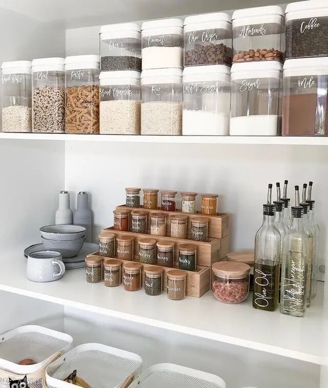 厨房定制高柜,除了可以内嵌烤箱、蒸箱之外,还可以留出空间定制一个储物柜的,专门用来摆放零食或调味料等,摆放整齐,看起来超治愈系的!