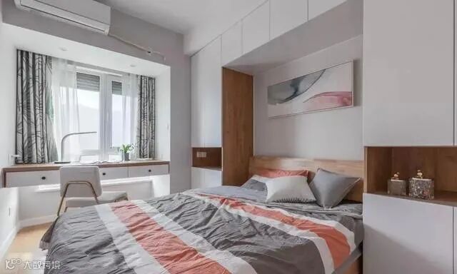 有些人可能认为卧室就是用来睡觉,床边杂物愈少愈好,但是还是建议在床头留个小台面,可放杯水、眼镜或闹钟等,比较实用。