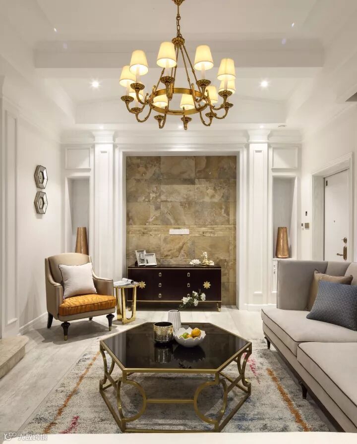 优雅轻奢风设计,华丽却不张扬,典雅又精致,成为现代人家居环境的品位追求。瓷砖运用在客厅中,让空间唯美而精致,将经典与奢华赋予了永恒的灵气。