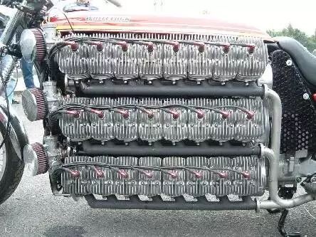 看看这个吉尼斯世界纪录保持者“48缸的川崎4000CC二冲摩托车 ”。 超级强悍的爆改摩托车具有48个缸体,每一排有8个缸体,总共六排缸体分别位于车辆的左右两侧,难怪必须使用如此硕大的排气管才能满足这么多缸体的排放需求。