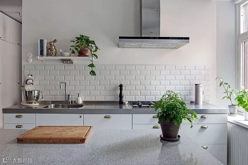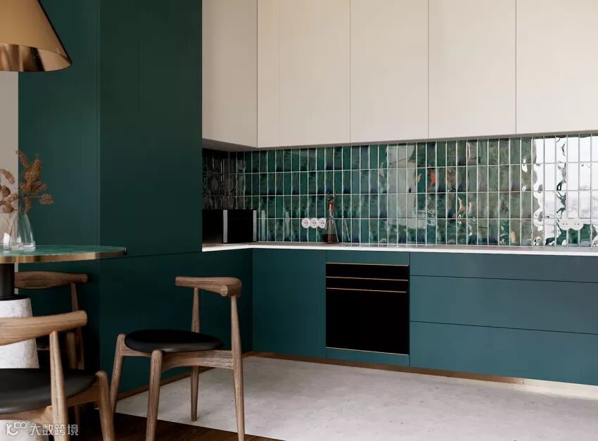 下绿上白的橱柜+碧绿的瓷砖,特别是雾面橱柜,呈现出来的层次感和质感,相当感人。