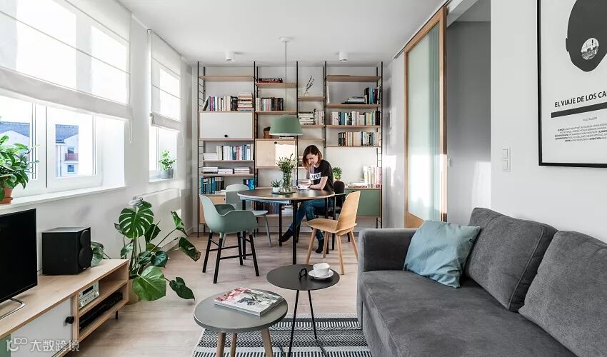 这是波兰设计工作室 RACA ARCHITECTS 的最新案例,全屋用简白色调为基底,薄荷绿作为点缀,透过温润木质和绿意植栽相互搭配,烘托自然写意气息。