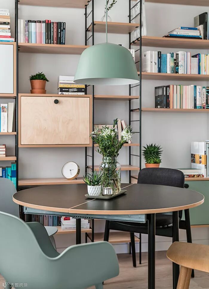 圆桌作为小户型的绝佳搭配,被用到此处,一点也不意外。