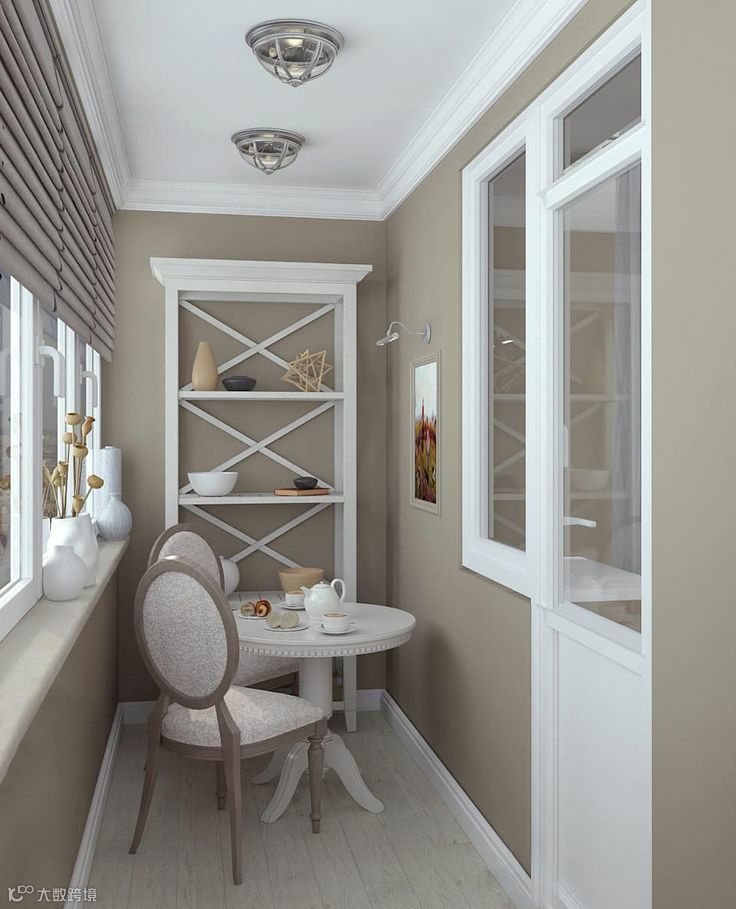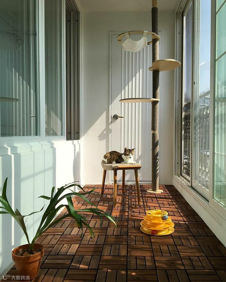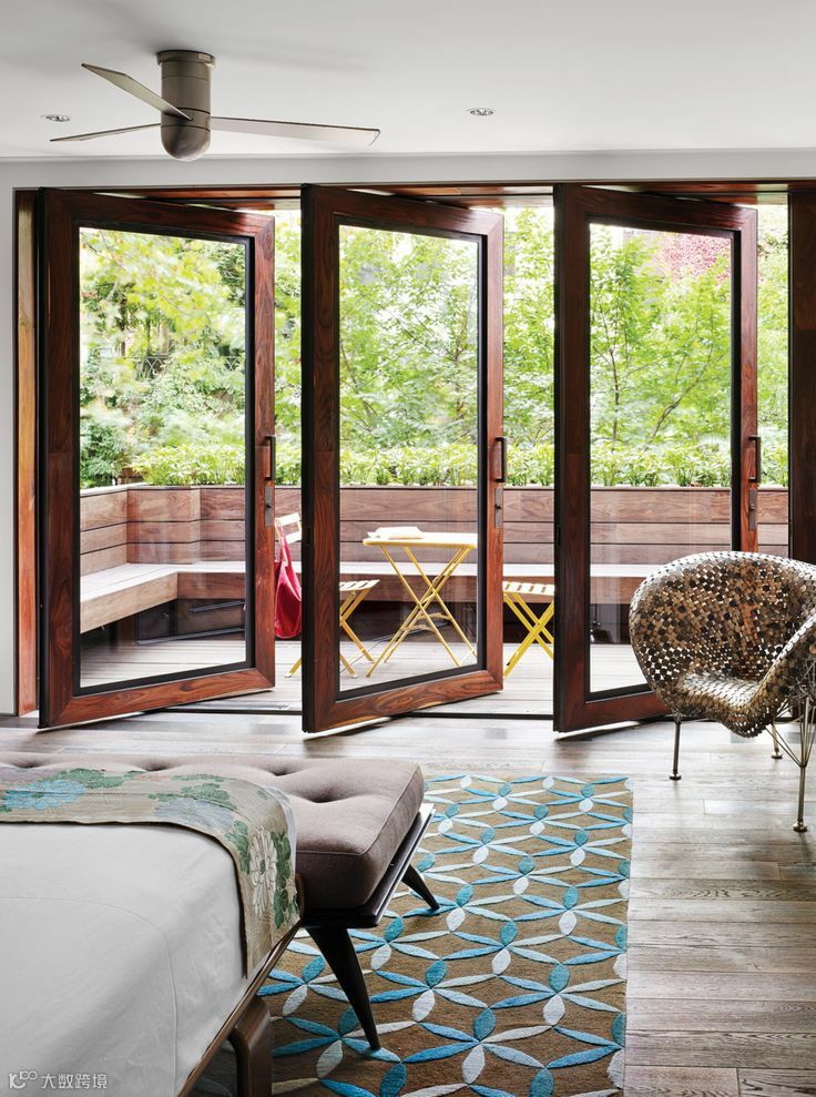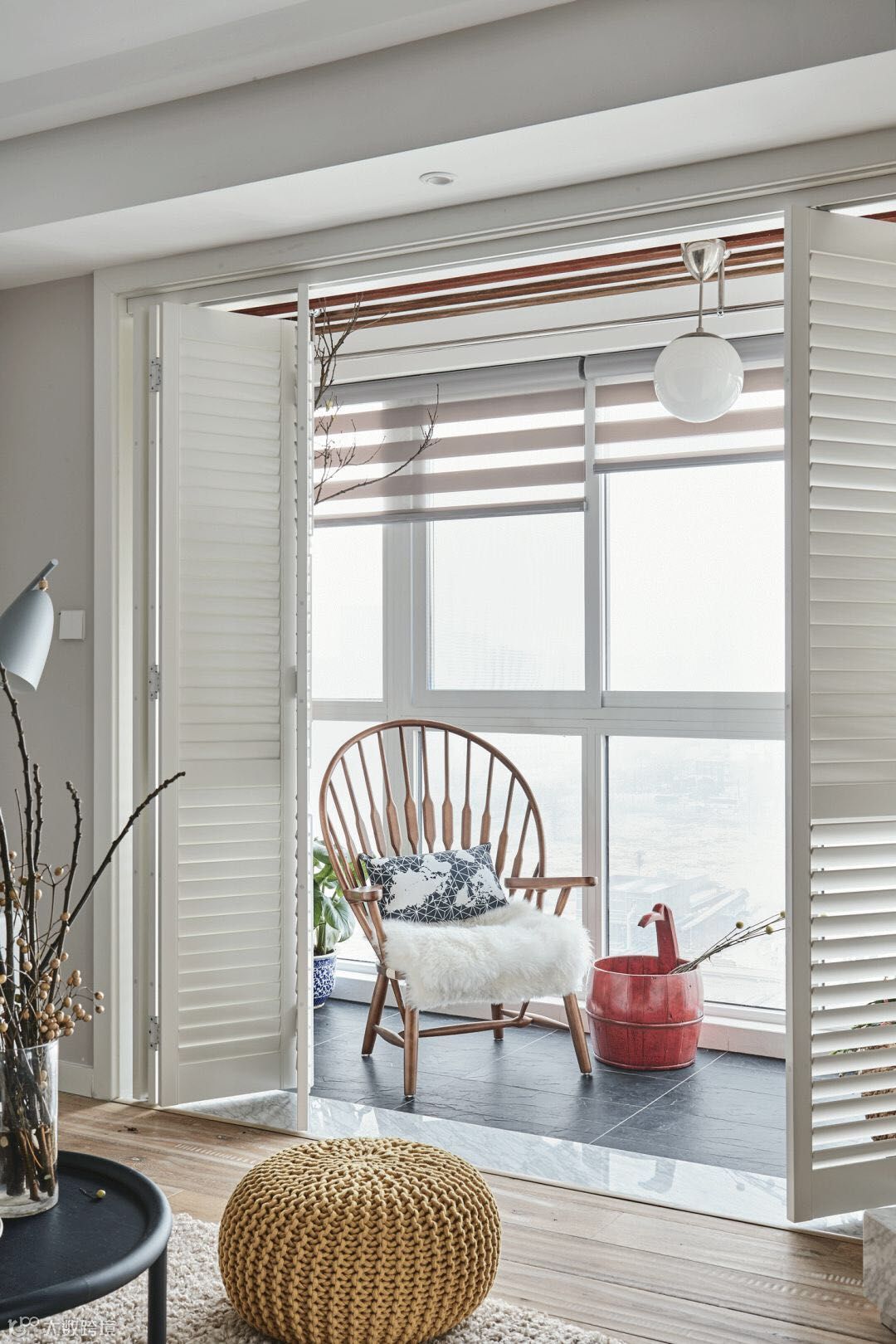 如果你喜欢一个独立的空间,又不想光线过暗,可以用单扇门同时在旁边加多一个窗户,这样就可以不影响室内的光线,也可以在阳台上有个私密的空间。