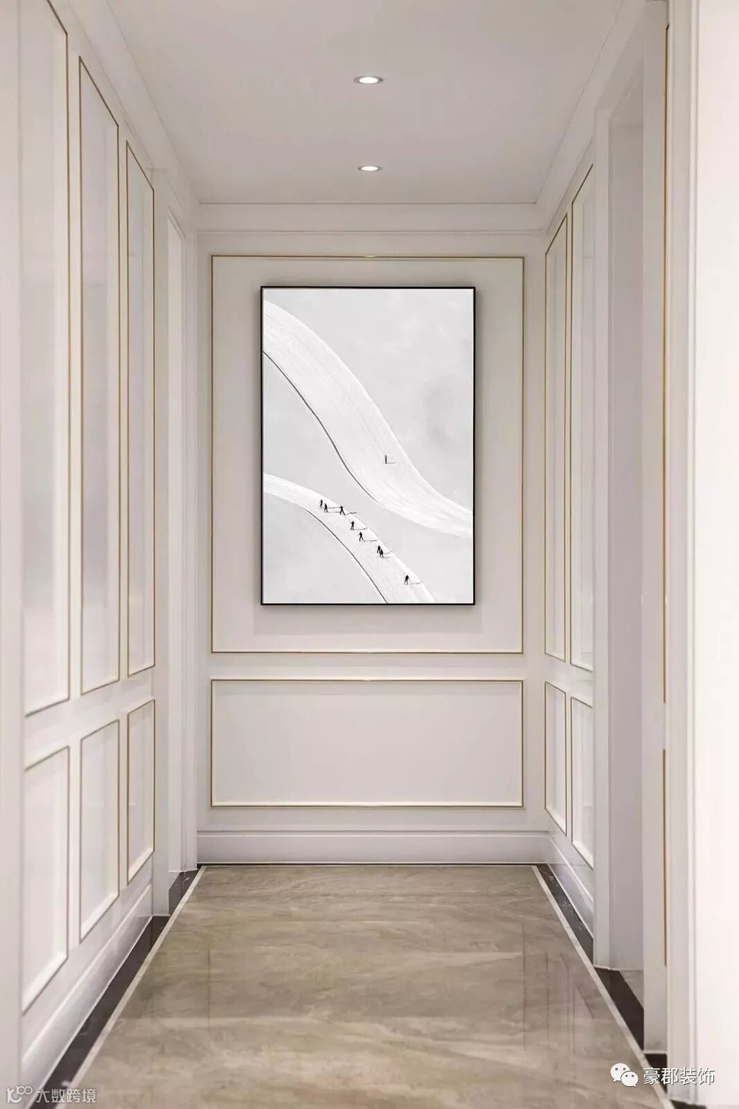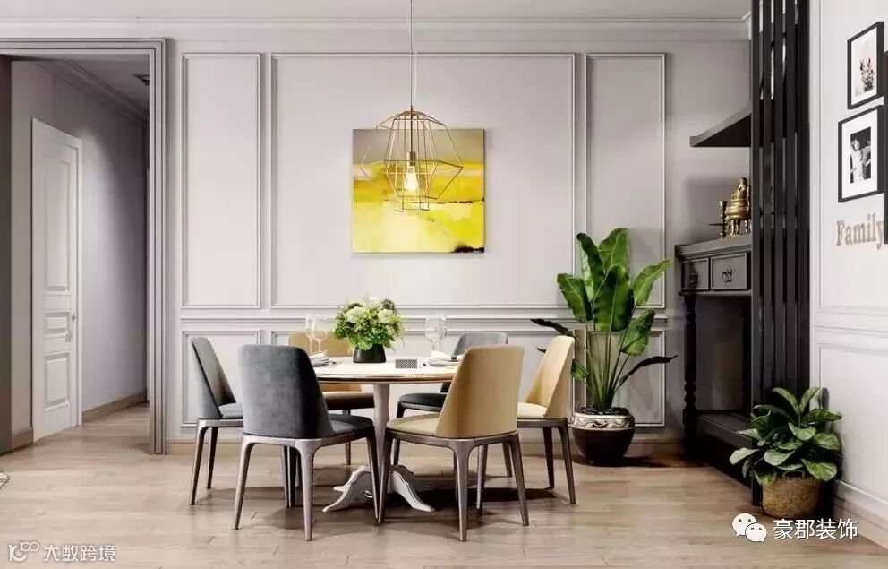 其实只要利用简单的白色细框线加以装饰,给单调的墙面勾勒一些直线条或几何造型,就会让你家的空间格调瞬间提升几个档次,看起来精致、美观多了。