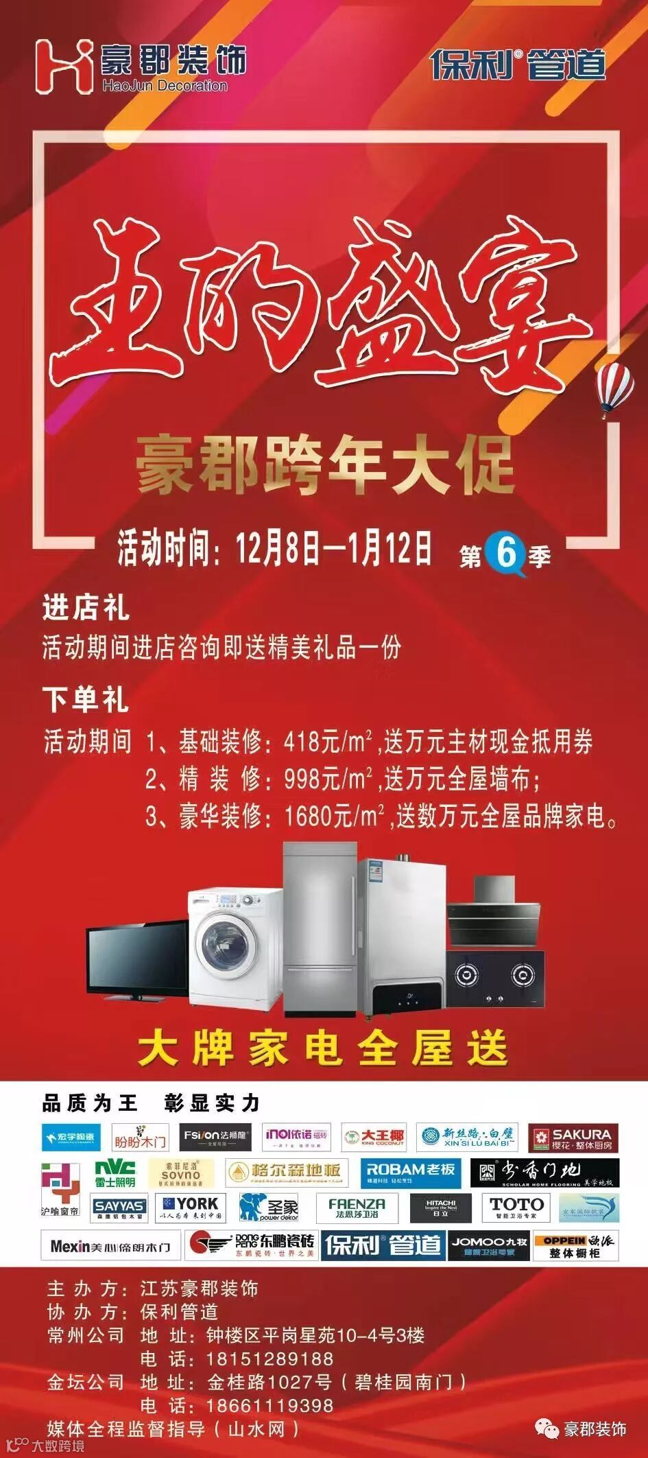 年末充量大回馈,年前下定,年后淡定。凡本次活动签单成交客户均享受来年保价服务确保明年不涨价享受同等服务。同时竣工验收后再送水电隐蔽工程质保10年,基础2年,终生质保,一次装修终生朋友。