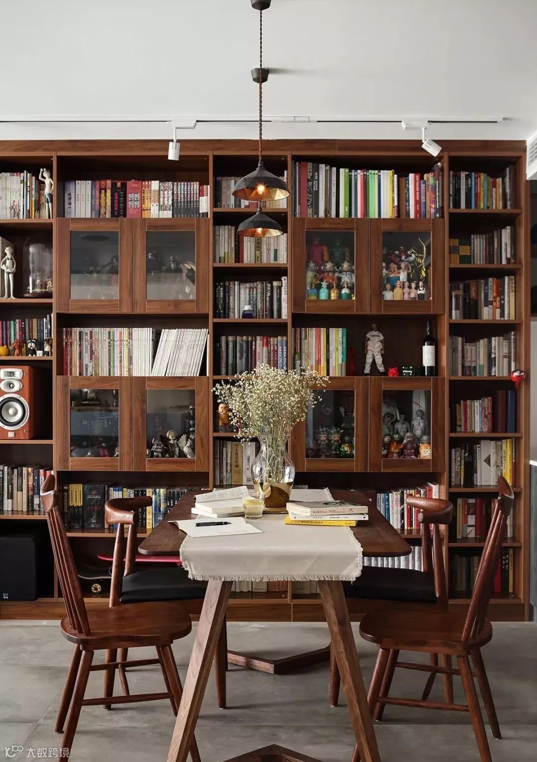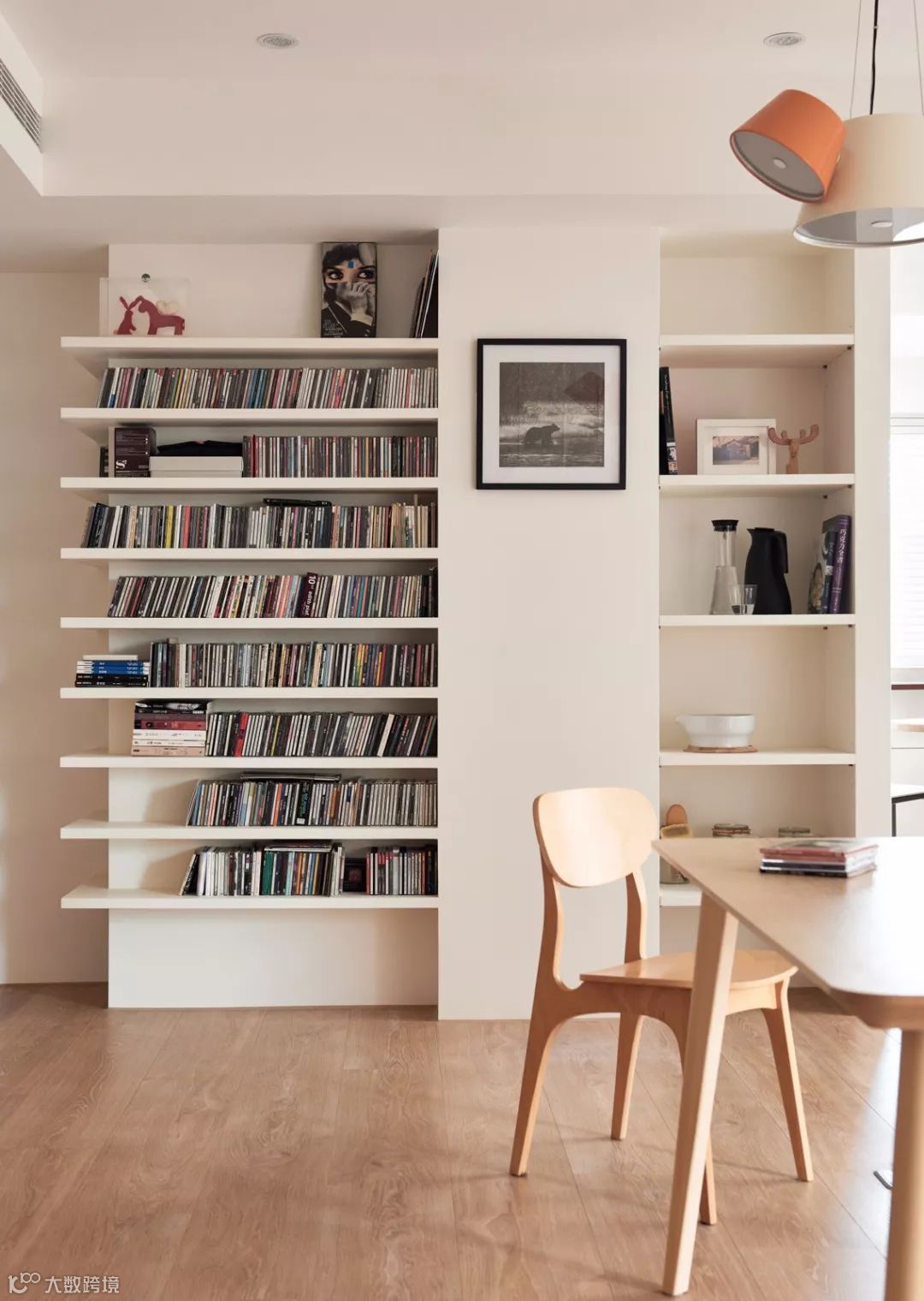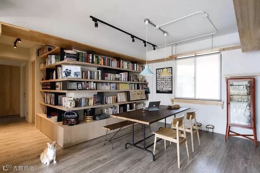 当然不是每家每户的客厅都有足够的位置摆放书架,除了客厅,你还有餐厅这个选项,这时可以把餐厅的桌子变身工作台,一物多用,实用性满分!