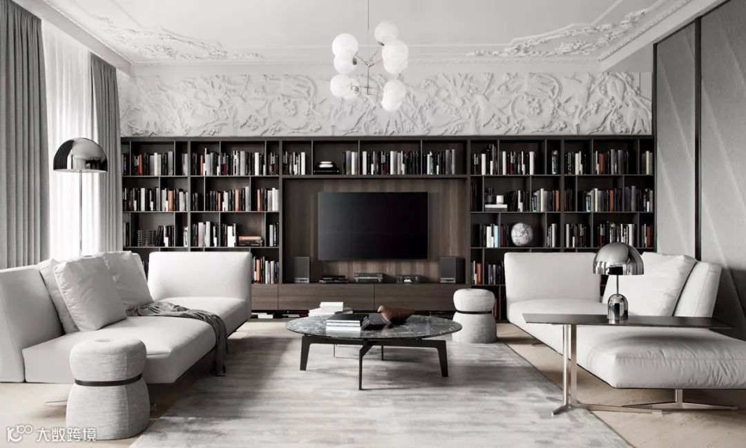 没有什么比在客厅设置一面书墙,更能营造家中的书香气了,客厅是家庭中最主要也是最重要的公共区域,能在这里增加书架摆放书籍,长时间的耳濡目染,可以增加自己和家人读书兴趣。