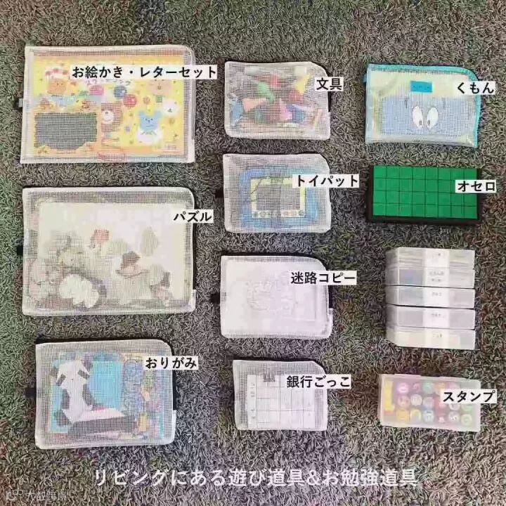 绘画工具、牌卡游戏,这种小型玩具,就用透明拉链袋、PP收纳盒分门别类收好。