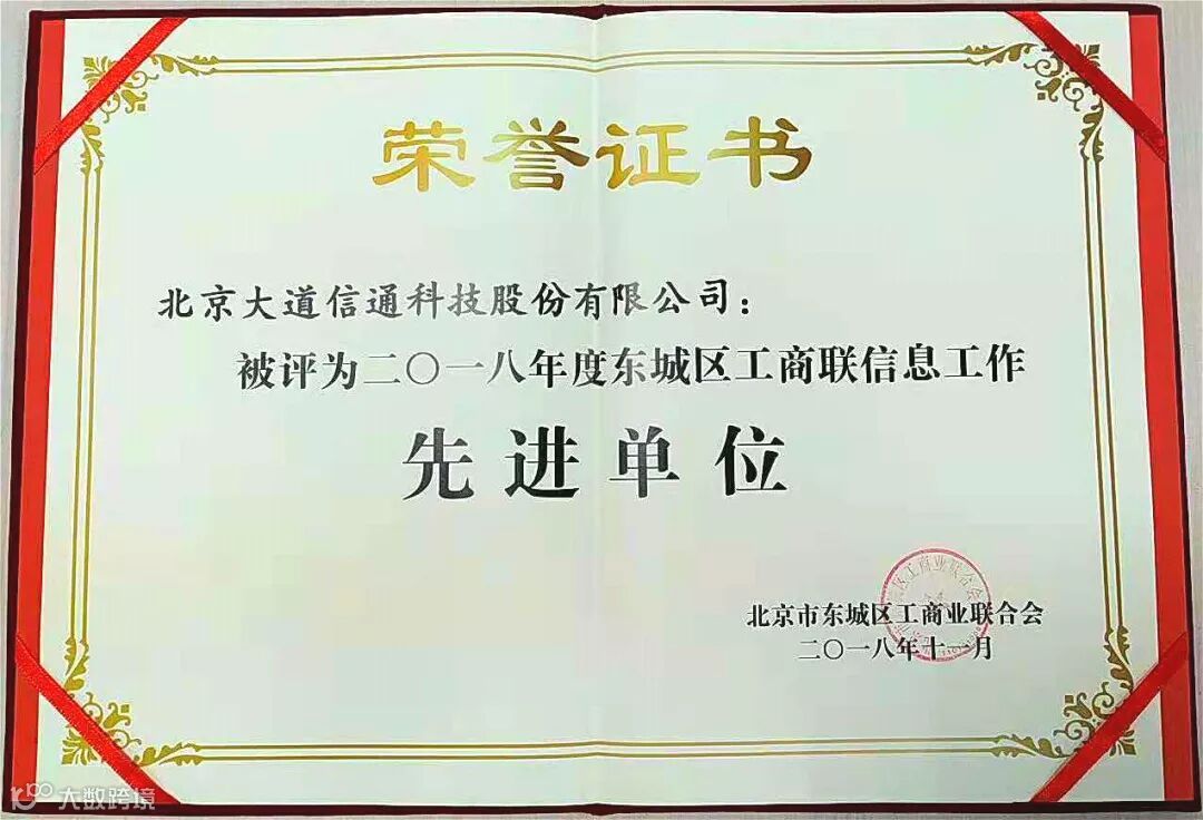 大道信通的信息(宣传)工作在东城区工商联和党支部书记的指导下,抓方向、重纪律、树典型、搞创新,仅2018这一个年度,便相继就党建、扶贫、便民服务等进行多形式、全方位的宣传报道,活动不仅受到各级领导的关怀和指导,而且也产生了广泛的良好社会效应。在这一年里,大道信通相继被评为新三板最具发展潜力企业、北京市高新技术企业、北京市非公经济党建示范单位等荣誉称号。