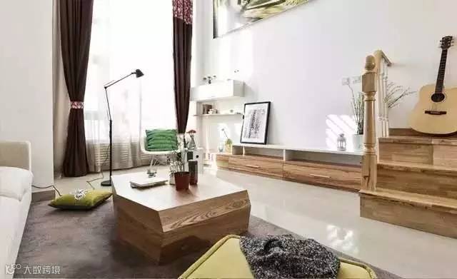 因为户型面积不大,但是楼层高度挺高的,所以为了充分利用每一分空间,就将房子设计成了跃层式的,足足将面积扩大了一倍。