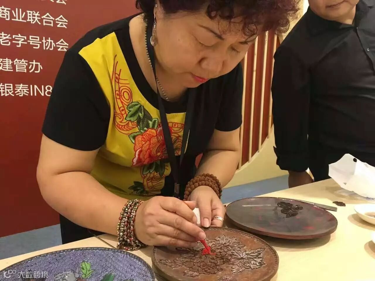 北京珐琅厂的技艺展示是传统珐琅工艺中的点蓝,用特殊的方式为工艺器皿上色,行云流水间演示步骤的大师还一度将手中工具递给现场观众,邀请大家一同参与到制作工艺品的过程中,体会这种别致的工艺手法。往往一件成功的珐琅作品,需要的是几个月的时间投入,其中所蕴含的价值自然不菲。