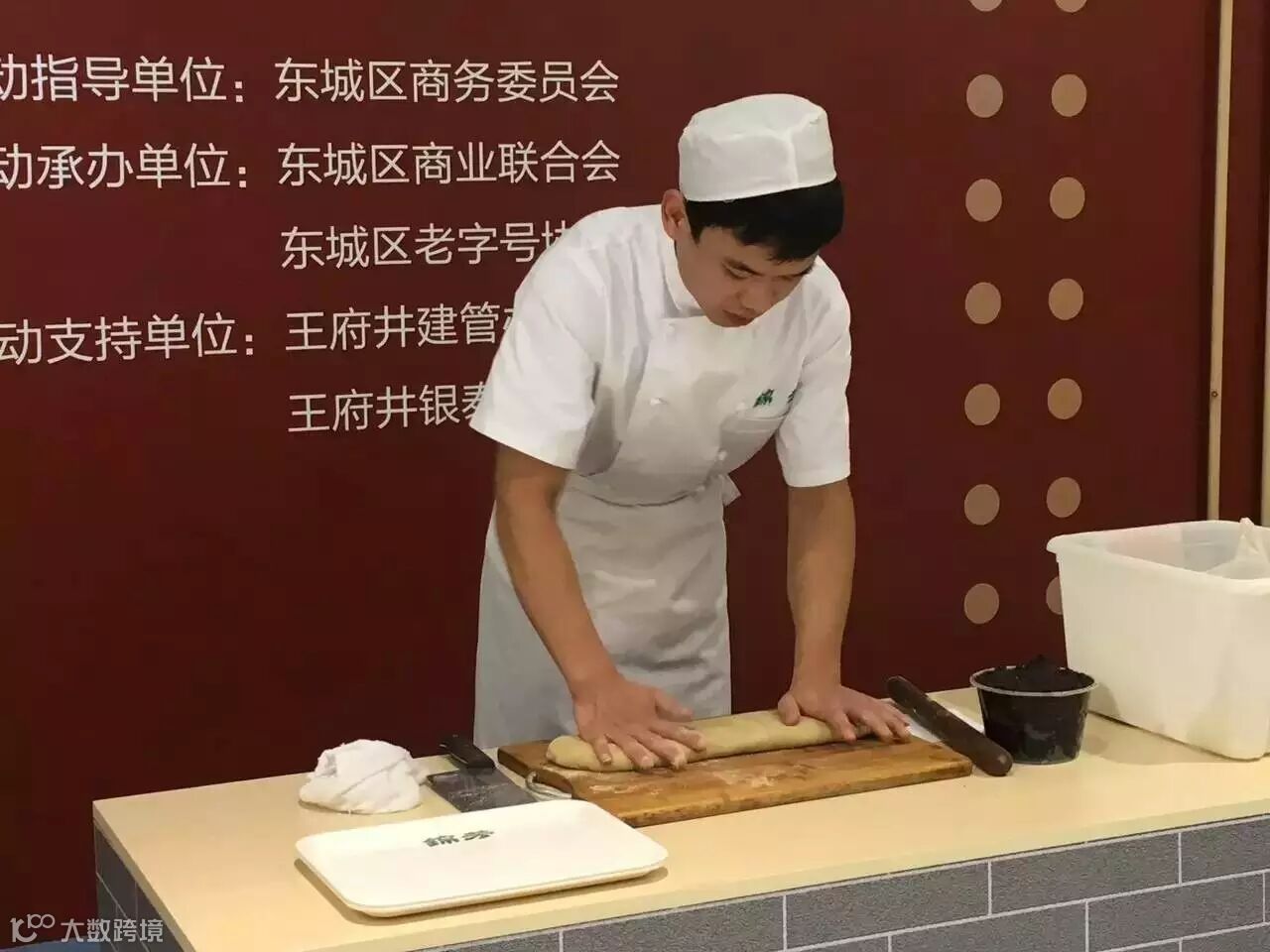 都一处的技艺展示大师在表演场次中为众人展示了都一处传统手工烧麦的制作方法,巧手翻腾间,一个精致可人的烧麦便成型了。精心擀制的面皮加上原料足实的馅料,便构成了都一处的烧麦!大师从业多年,至今为止已经制作了800多万个烧麦,堪称一绝!