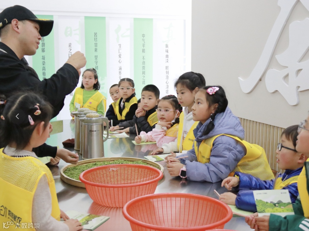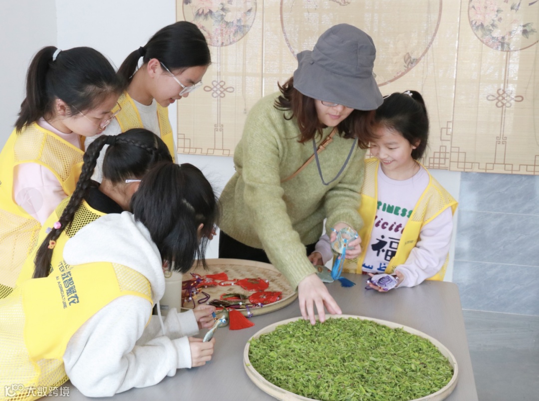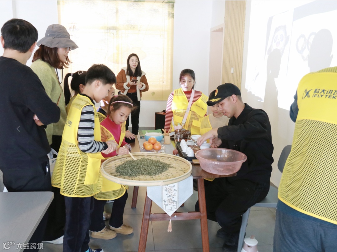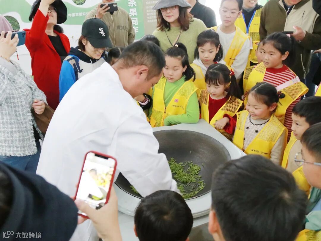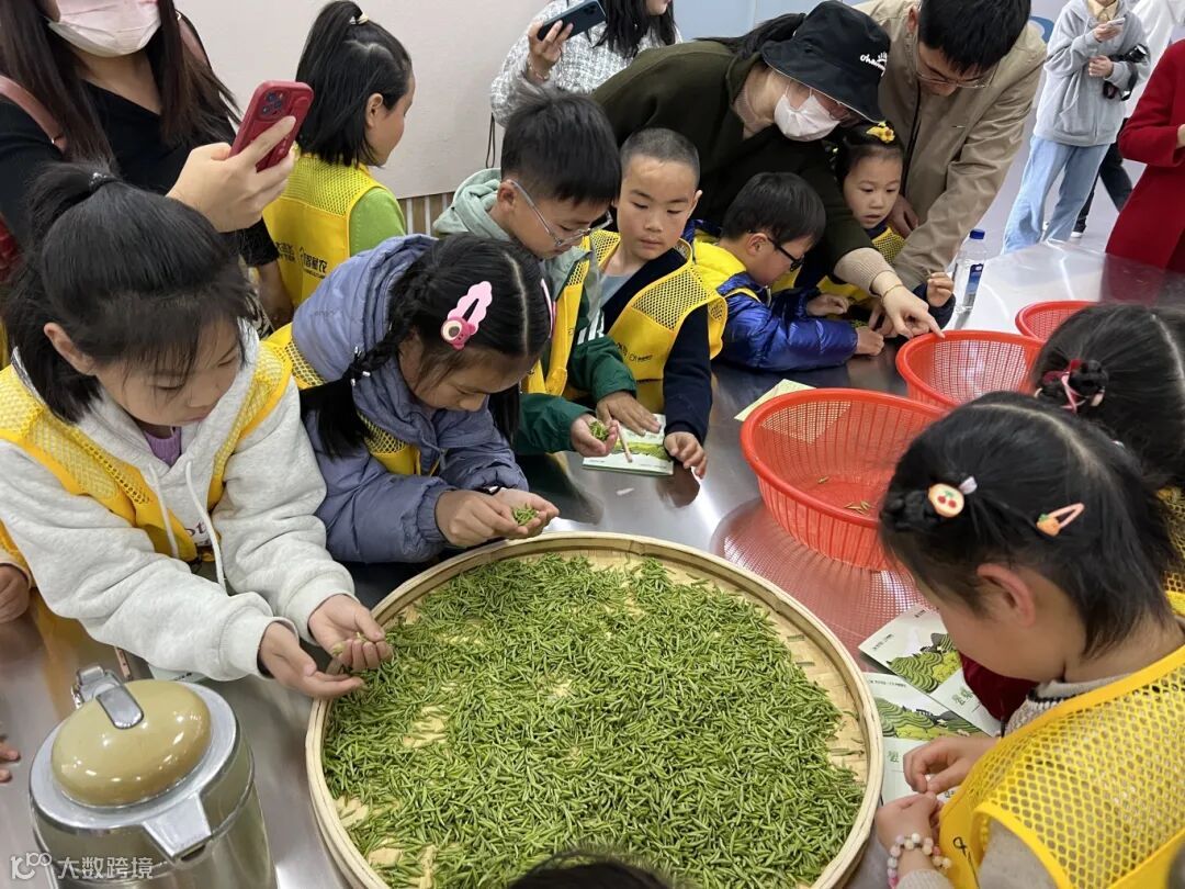 孩子们现场体验杀青、炒茶、揉捻的过程