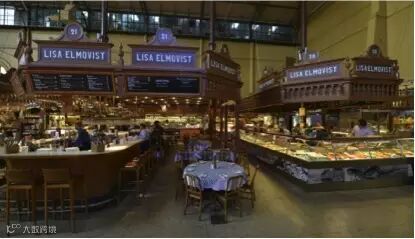 以斯德哥尔摩的Saluhall市场为例,菜市场的中央设置了干净舒适的餐吧区,人们在购物之余,可以美美地吃个便餐、喝杯小酒,享受一天中的美好时光。