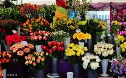 大概是因为热爱美食的人们都热爱生活,许多市场中还专门设有鲜花区。人们在买菜之余捧上一大把花回家,把生活的每个角落都装点得温馨美丽、充满生机。