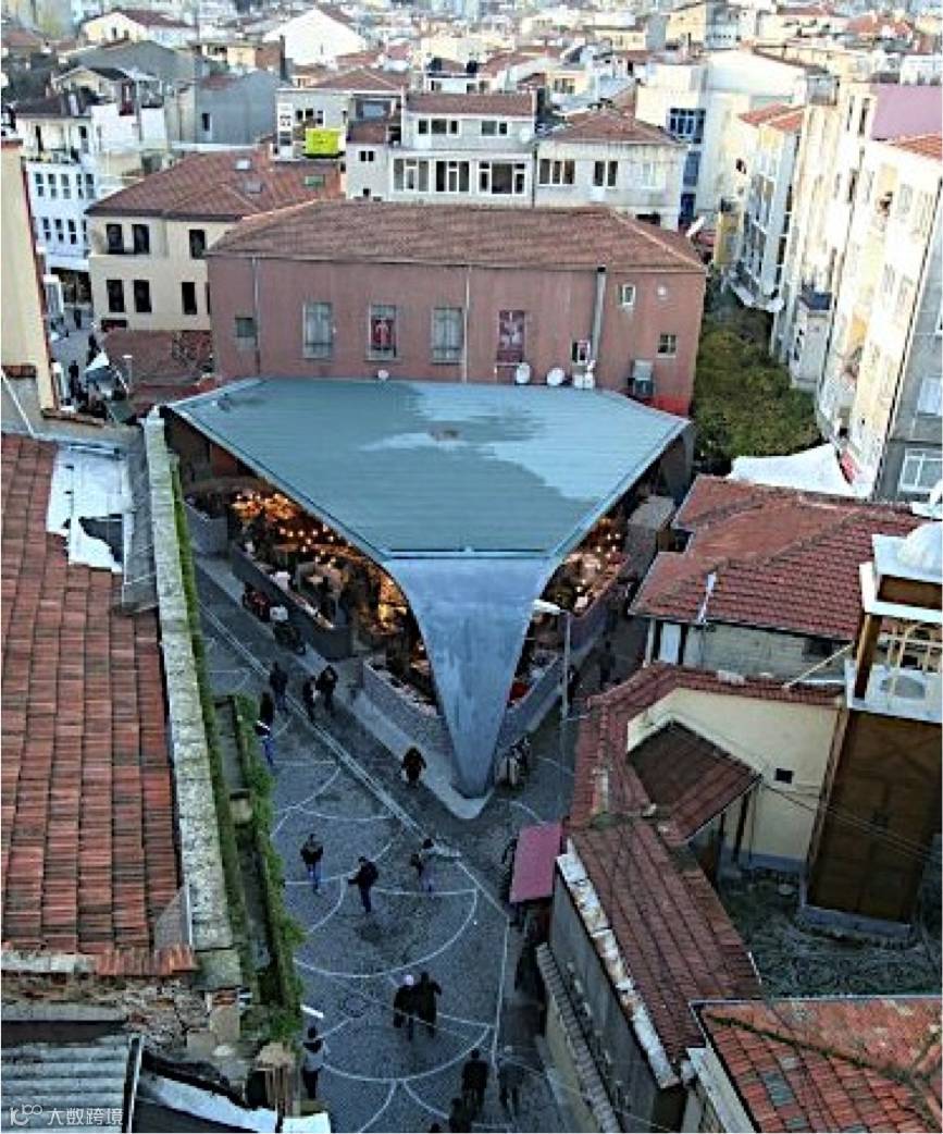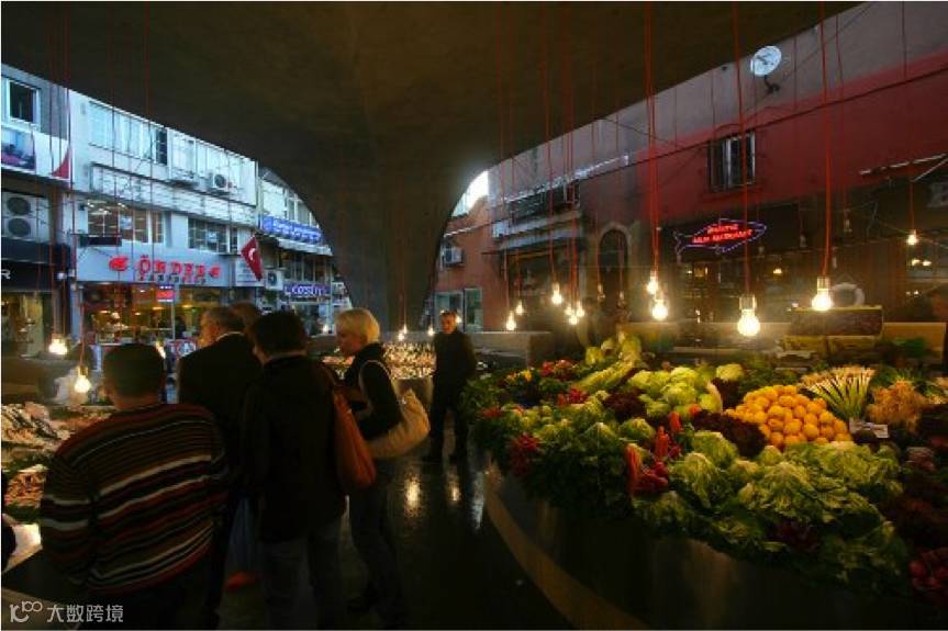 再来看看土耳其贝西克塔斯的鱼市场,它位于一块三角形地块上,是当地人和游客日常购买鲜鱼的场所。由于人口密集、管理疏忽、设施不足,市场存在卫生条件差、周边交通混乱的问题,因此市政府委托建筑师对其进行改造设计。