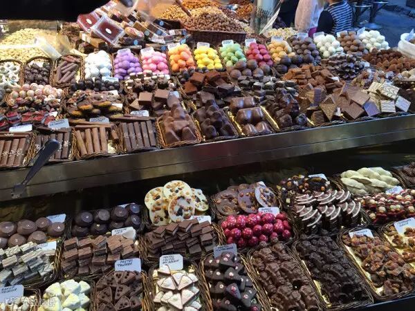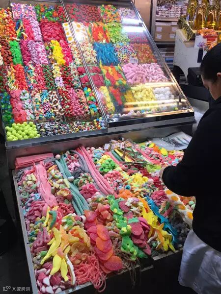 西班牙的博盖利亚市场中则有大片零食区,彩色软糖、鲜榨果汁、香浓的巧克力、热气腾腾的松饼,让人欲罢不能,雀跃的孩子们奔前跑后,把菜市场当成了周末的游乐场。
