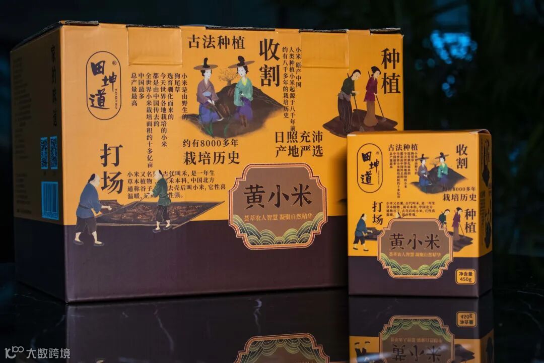 田坤道米色礼盒,共有白小米、黑小米、黄小米、绿小米共四种颜色的小米。