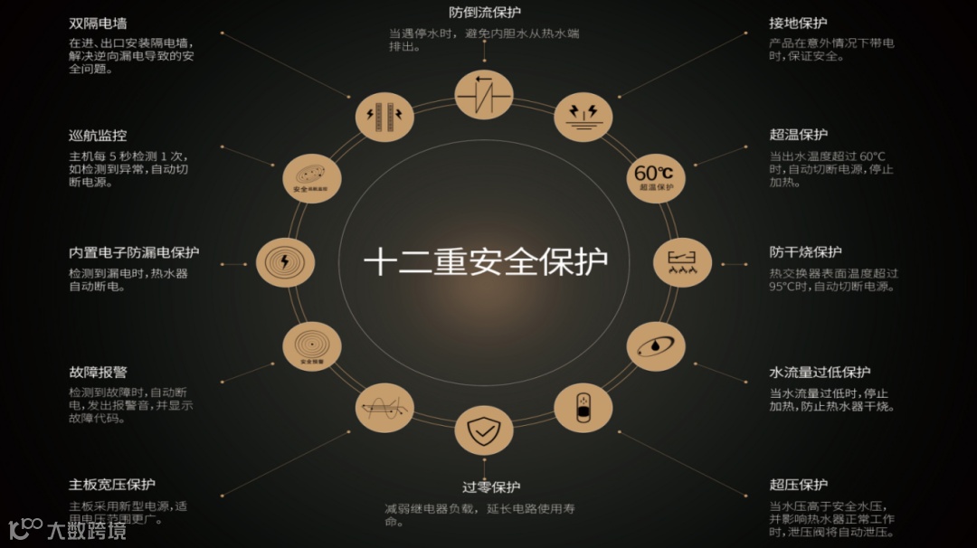B.安全和功率高并没有什么必然关系,主要和电压有关系。快速电热水器和其他家用电器安全性能都一样。(像中国高铁 有十几万KW的功率,肯定是安全的)另外,每台机器都有御盾安全十二重防护。