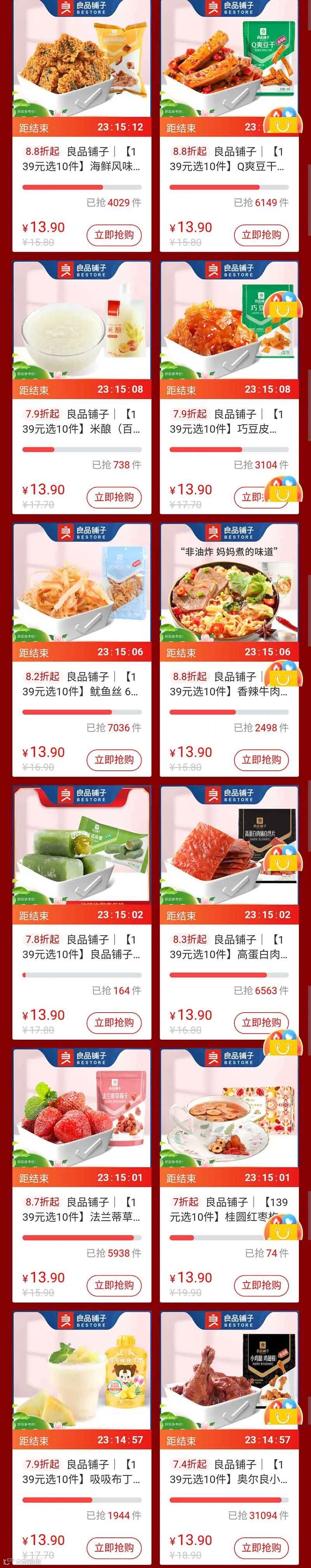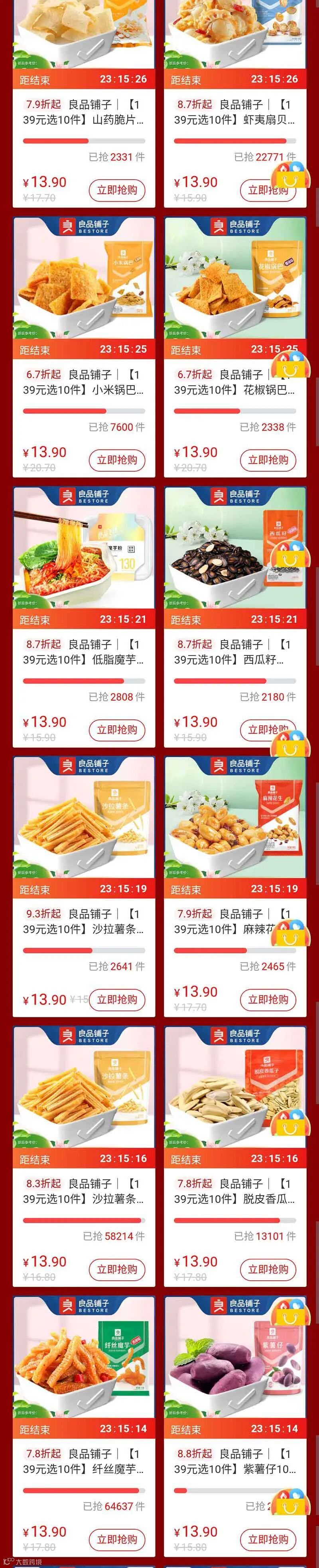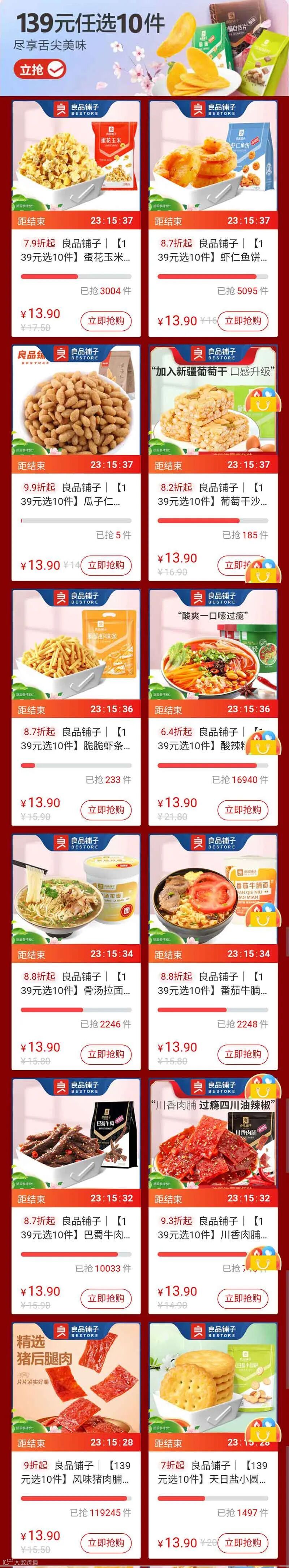 良品铺子精选零食:139任选10件,到手一大箱(抽奖优惠券可用)