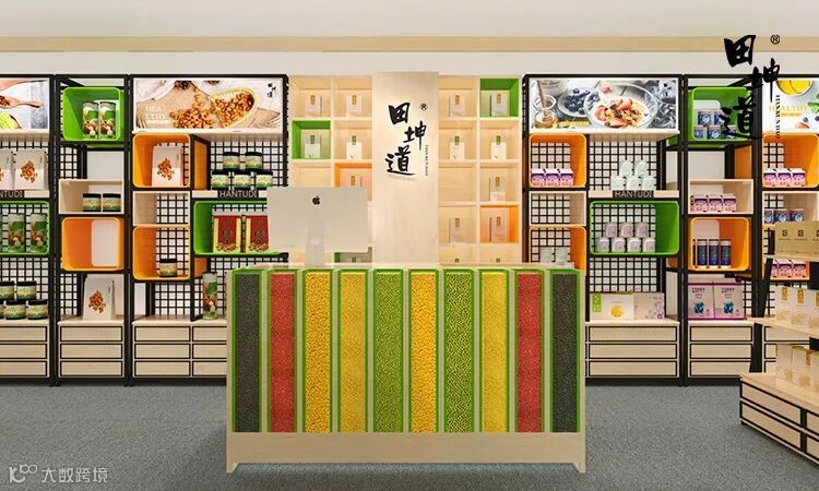 有关田坤道品牌店面的主色调,设计师们反复推敲了无数次,选择了丰收橙。在设计中,色值是:C:0 M:36 Y:93 K:0。