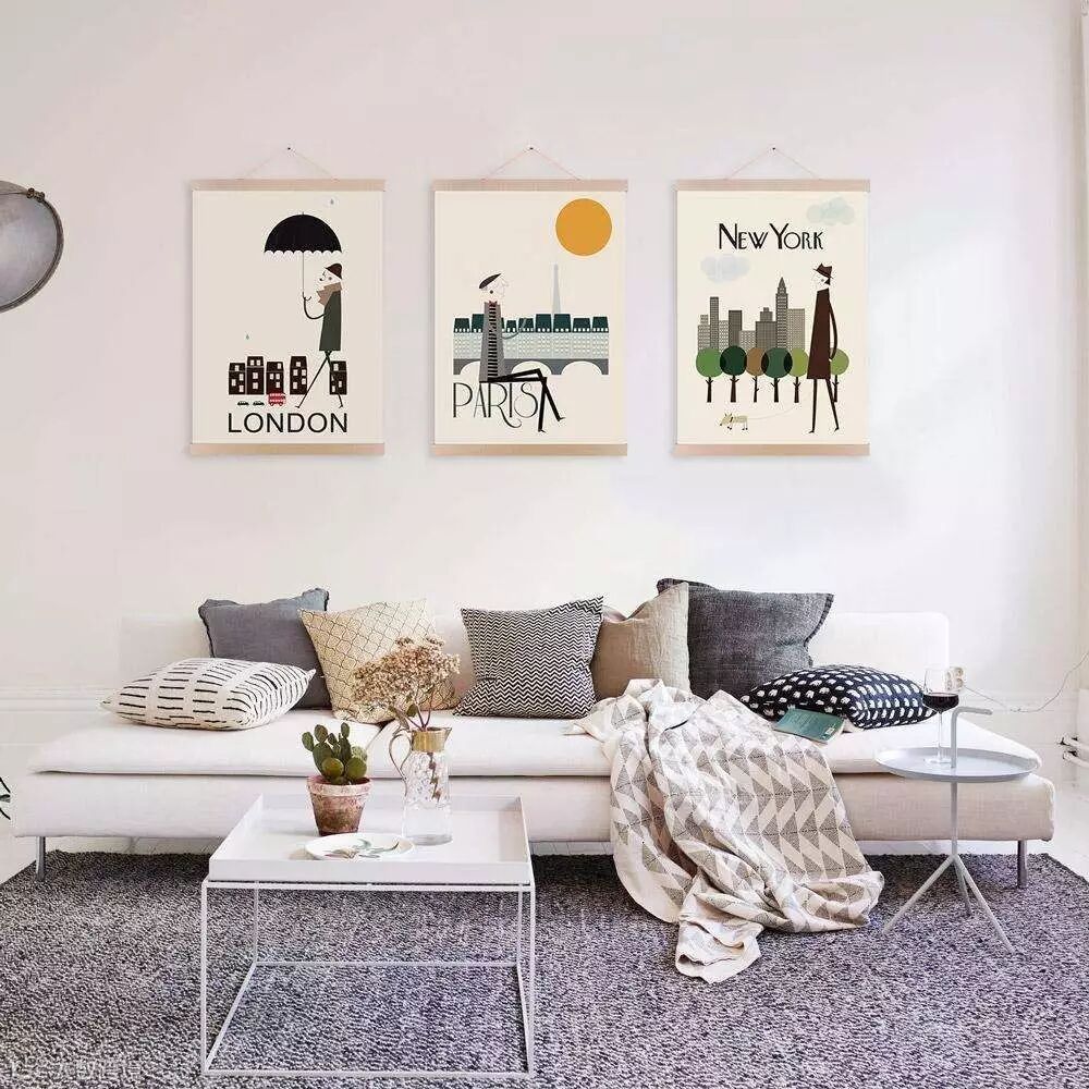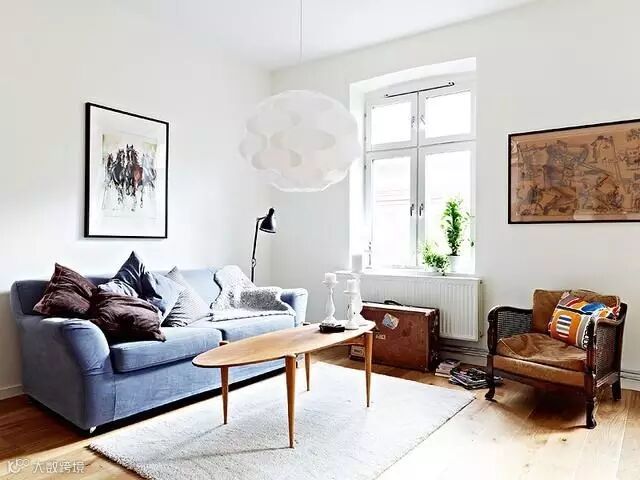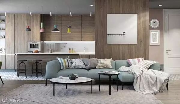 纯色的沙发,放几个抱枕上去,一来会显得更温馨,二来抱着抱枕看电视是绝佳的享受。但是只有抱枕的沙发,看上去会有点寂寞,如果给沙发放一条毯子,沙发的世界就完整了。