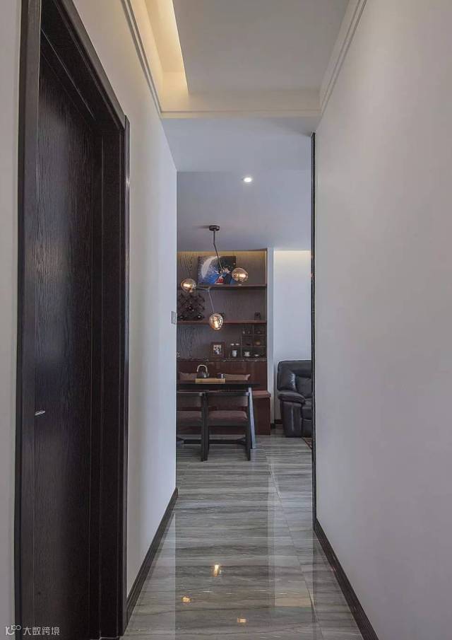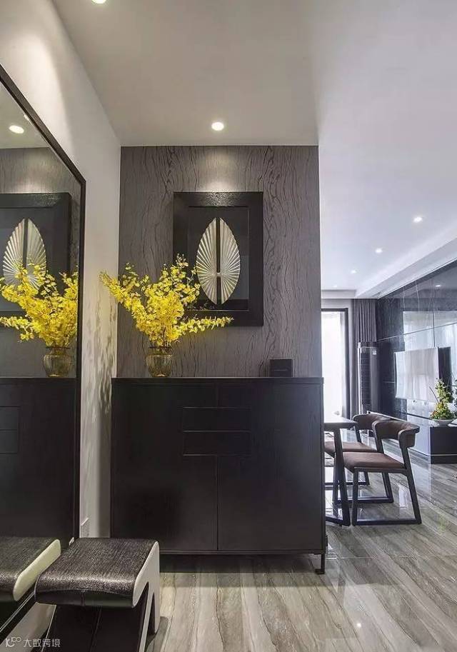 玄关处设置了一个隔断,以此充当玄关与客餐厅之间的过渡,既美观,又满足了试衣镜和换鞋功能。