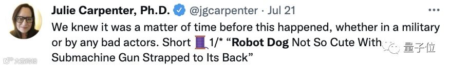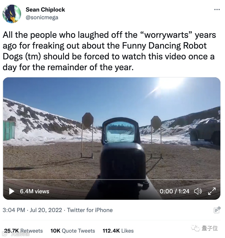 尽管如此,这段机器狗背着冲锋枪来回射击的视频还是给网友带来了很大的冲击。