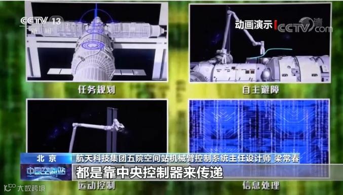 为实现整个机械臂的平稳运行和精确定位,空间站机械臂各处装有“控制大脑”,包括1套机械臂中央控制器、7套关节控制器和2套末端控制器。