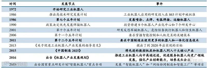国内工业机器人发展政策节点