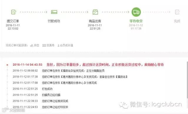 但小编有朋友的京东订单一直卡在当地几天。。。。