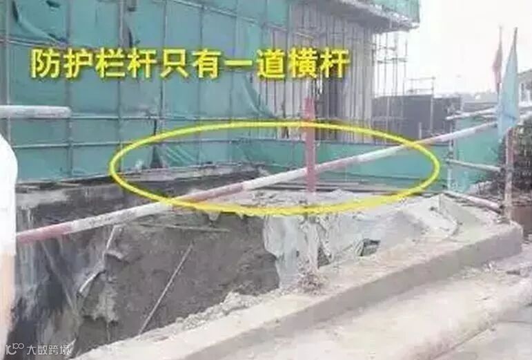 违反《建筑施工高处作业安全技术规范》:防护栏杆应由上、下两道横杆及栏杆柱组成,上杆离地高度1.0-1.2m,下杆离地高度0.5-0.6m。