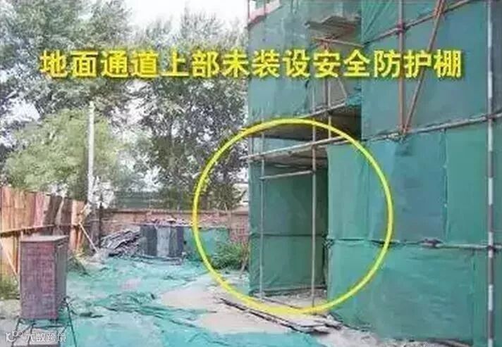 违反《建筑施工高处作业安全技术规范》:地面通道上部应装设安全防护棚。