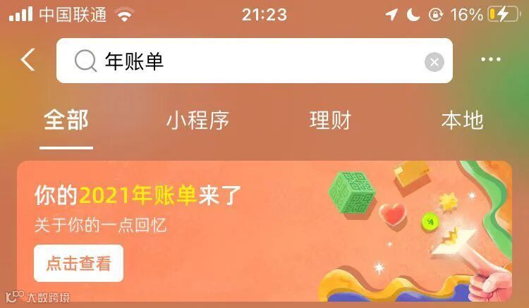 搜索“2021年账单”