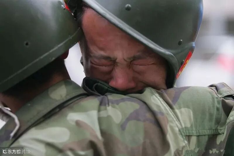 图为2008年5月21日,四川省什邡市红白镇,战士陈学拼命在救灾一线,他的老家就在一山之隔的江油市,同样属于受灾区,因为肩负重担,他不能亲自去寻找家人,地震发生后的7天里,他都不知家人的消息,后来在得知家人一切平安后,陈学趴在营长的肩上痛哭起来,致敬!(图片来自东方IC)