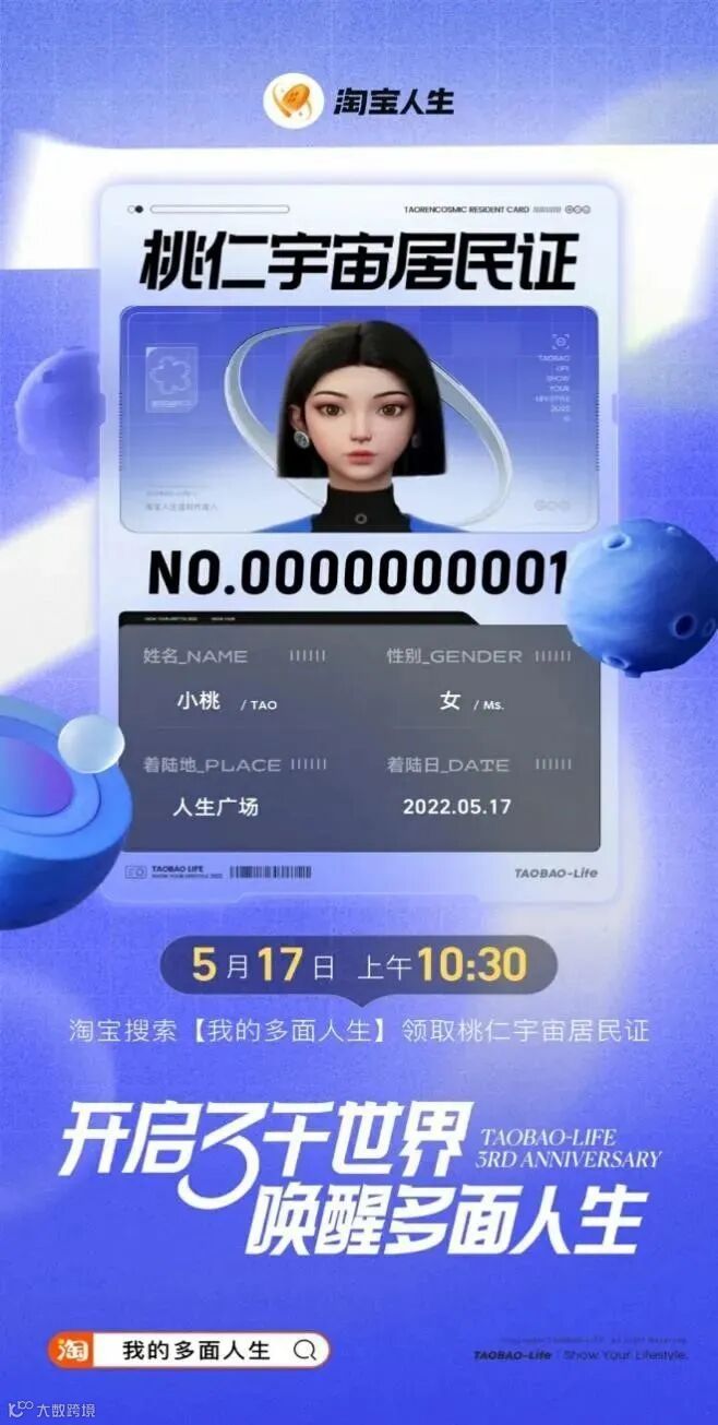 就在5月17日,淘宝人生曾面向全体淘宝人生用户,开启了具有唯一编码的“桃仁宇宙居民证”申请权限,全新“证件”特意进行了数字链存证。可能成为进入淘宝元宇宙购物的准入许可证。