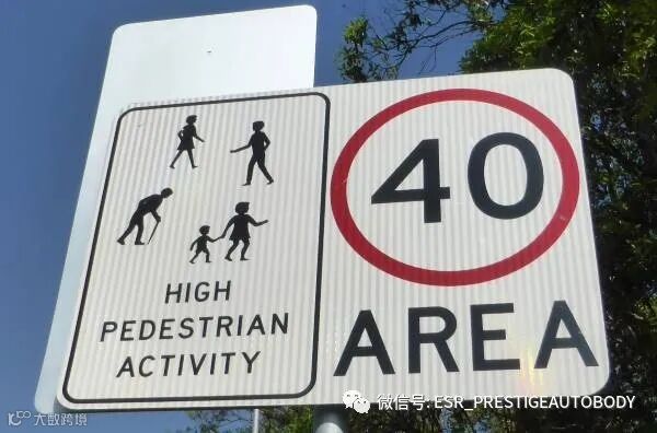 在行人活动频繁的地区(如上述标志所示)、本地交通区域、学校区域在规定时间内的行驶时速为40公里,以及校车黑点区域