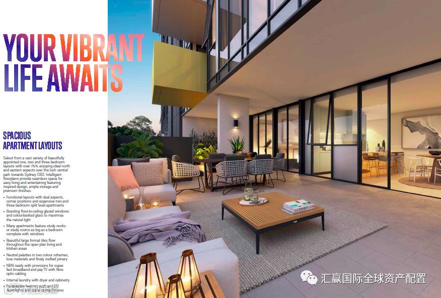 全新的Spectrum项目将建造4栋高达13层的住宅建筑,为您呈现347套超豪华公寓。北向公寓将拥有无与伦比的悉尼城市天际线景观,以及内部超大园景绿地景观。部分公寓面积冠绝该城区,并带有超大室外休闲空间。Spectrum将提供给住户超高层居住的全新体验。