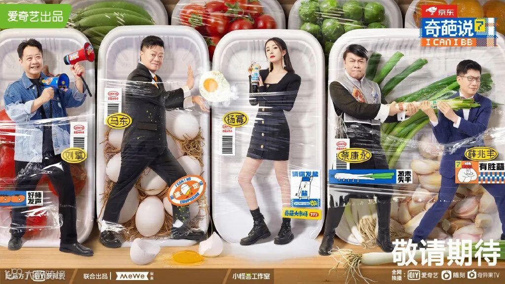 @奇葩说官方微博还发布了以下这一组“超接地气”的《奇葩说第七季》导师阵容海报。紧扣“奇葩大菜场”的主题,将人物与保鲜盒包装的蔬果相结合,为每位导师配上了与画面对应的谐音,诙谐有趣。
