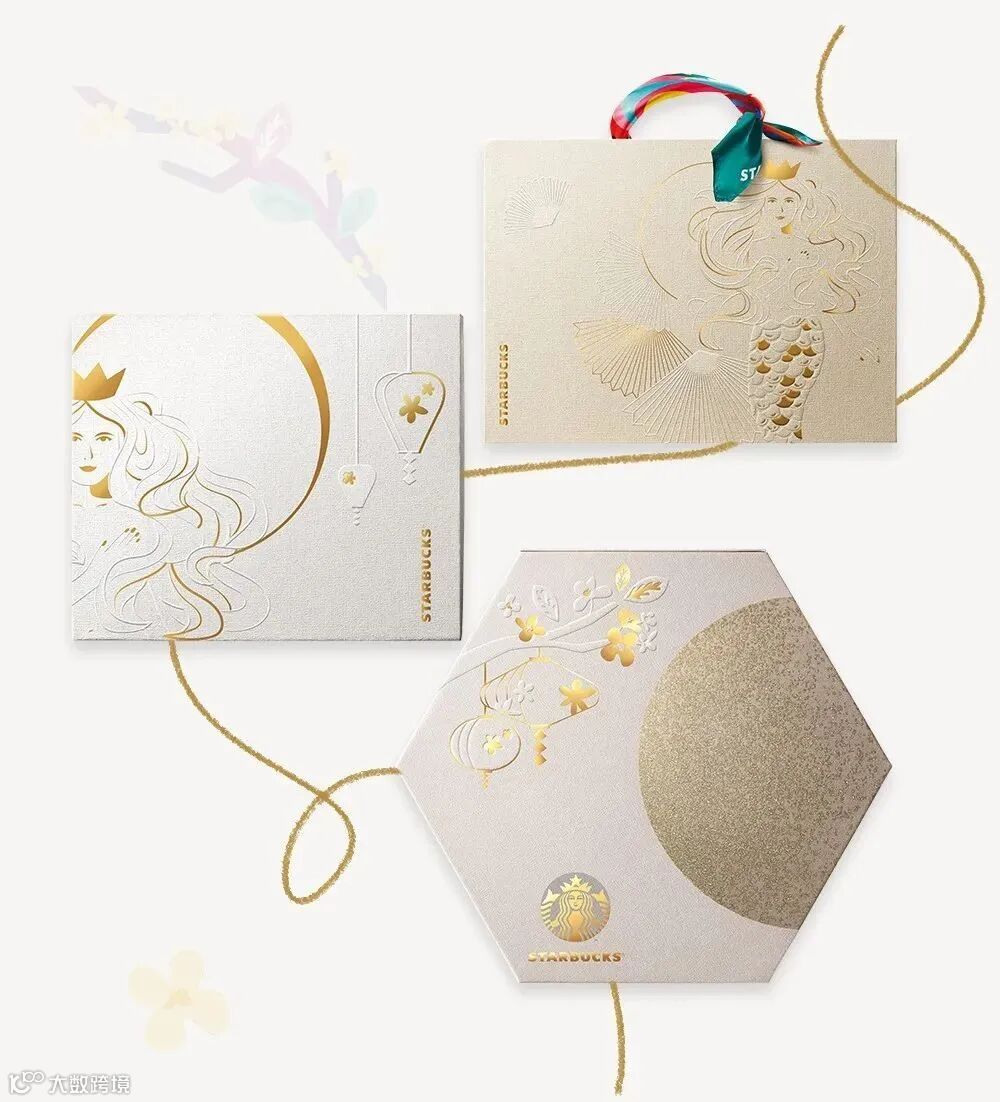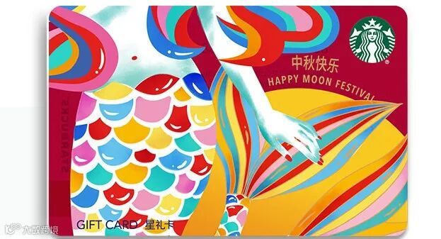除此之外,这个星巴克的彩色美人鱼,也被应用在星礼卡上。