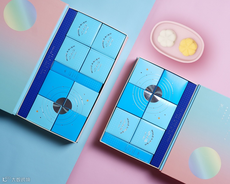 月饼的包装设计,以蓝紫的渐变色为主色,画面整体比较简洁。