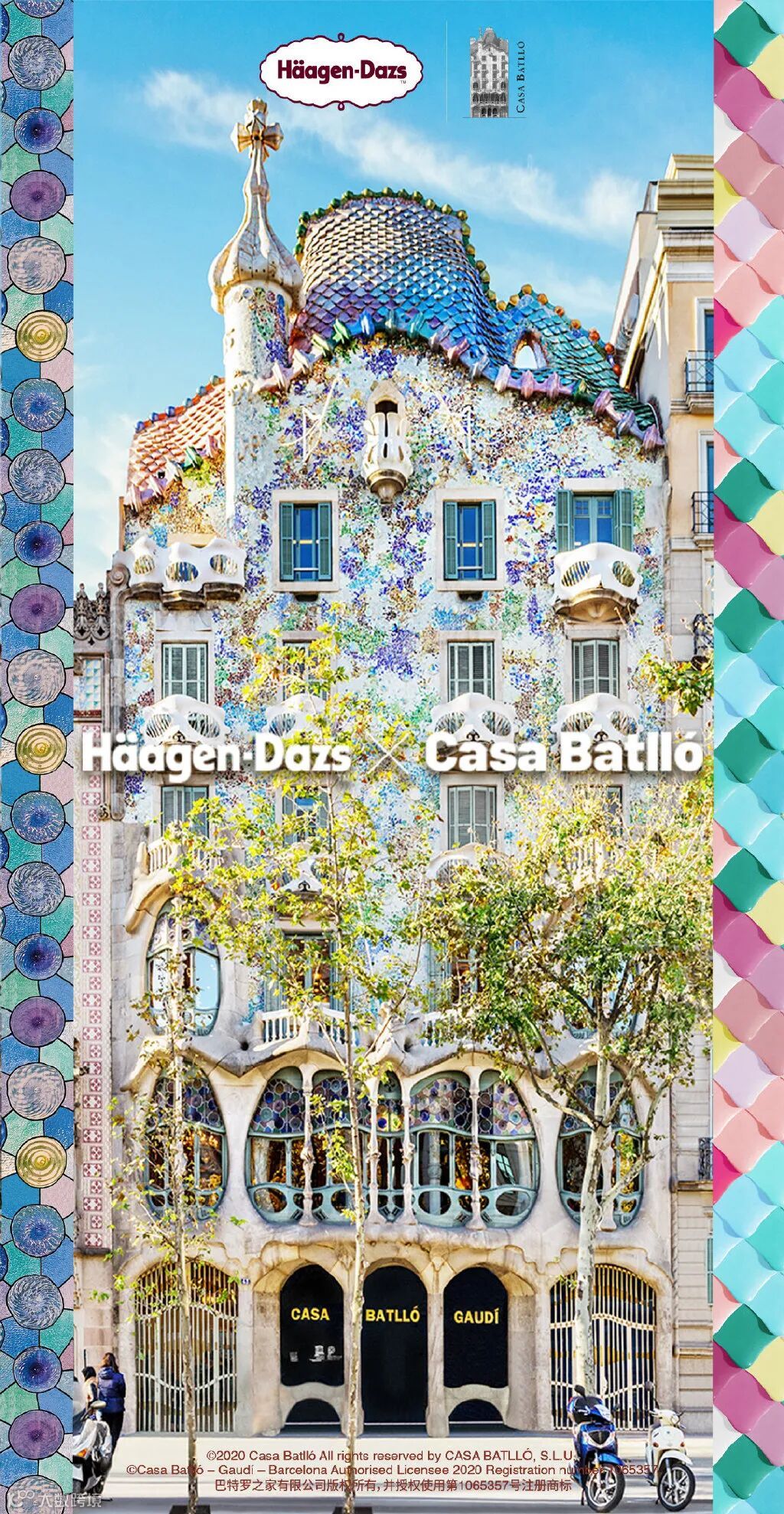 还有将巴特罗之家的建筑,外墙覆盖着陶瓷的环形图案,装饰上不同颜色及大小的玻璃碎片,作为包装设计元素,应用于整体当中。