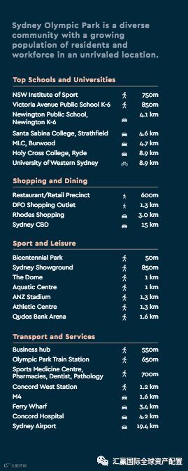 这一地区由悉尼奥林匹克公园管理局监管,设计伊始即以可持续发展生活为理念。在专人维护下,更为清洁、安全;有200余家企业、零售商铺、娱乐及餐饮场所在此为居民提供服务。
