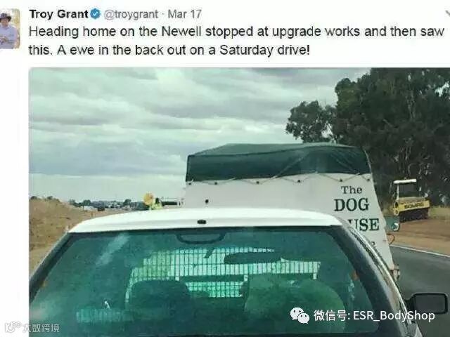 然后他就打开了Twitter,把刚才这张照片传了上去,还写了一段介绍:“开车往家走,路遇道路施工停下了车,看到了这样的景象:有人竟然周六带着羊出来兜风!”