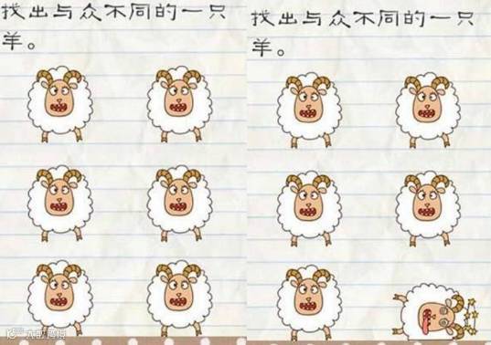 第4题:找出与众不同的一只羊?兄弟,你认真的说这6只羊真的不是复制粘贴的吗?