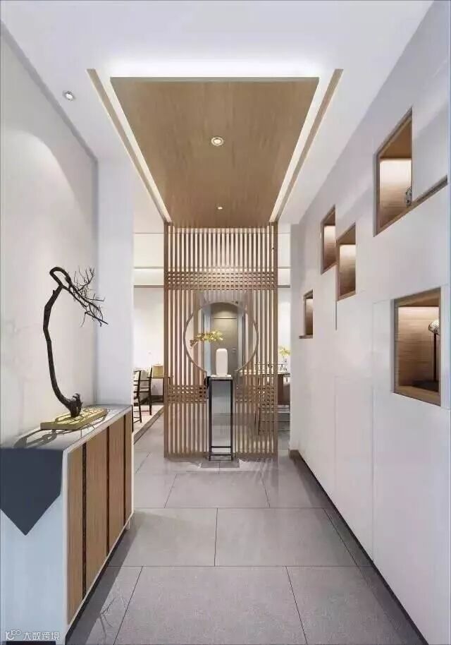 刚前面说到的,基本都是门厅的收纳功能。其实考虑完收纳功能之后,就要考虑美观。因为门厅是屋内视觉效果的一个分区,这个门厅就是家和外面的区别,好像和主人说,欢迎您回家。所以可以在门厅与室内的交界处,设计一些好看的垭口,这样会有一种“仪式感”,让房屋更加的美观,生动起来了。