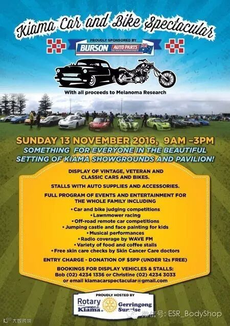 Kiama Car and Bike Spectacular The Kiama Car Spectacular and Swap Meet is on Sunday 13th November 2016 at the Kiama Showground. Veteran, vintage, classic cars and motor bikes welcome for show n shine. Trophies and prizes, variety of food and coffee stalls, kids amusements. Plenty of entertainment and a great day out for the family. Entry charge $5 per person, under 12 free. Vehicle judging at 12 noon - display cars free. For more info call Bob (02) 4234 1336 or Christine (02) 4234 3033. |