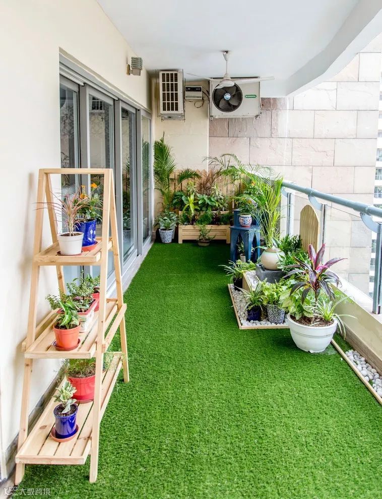 ▲ 给阳台铺上人工草坪,打理起来会更加方便,而且这满目清新的色调,仿佛一下子把你拉进了大自然。