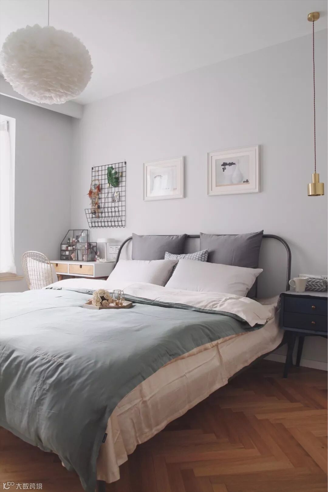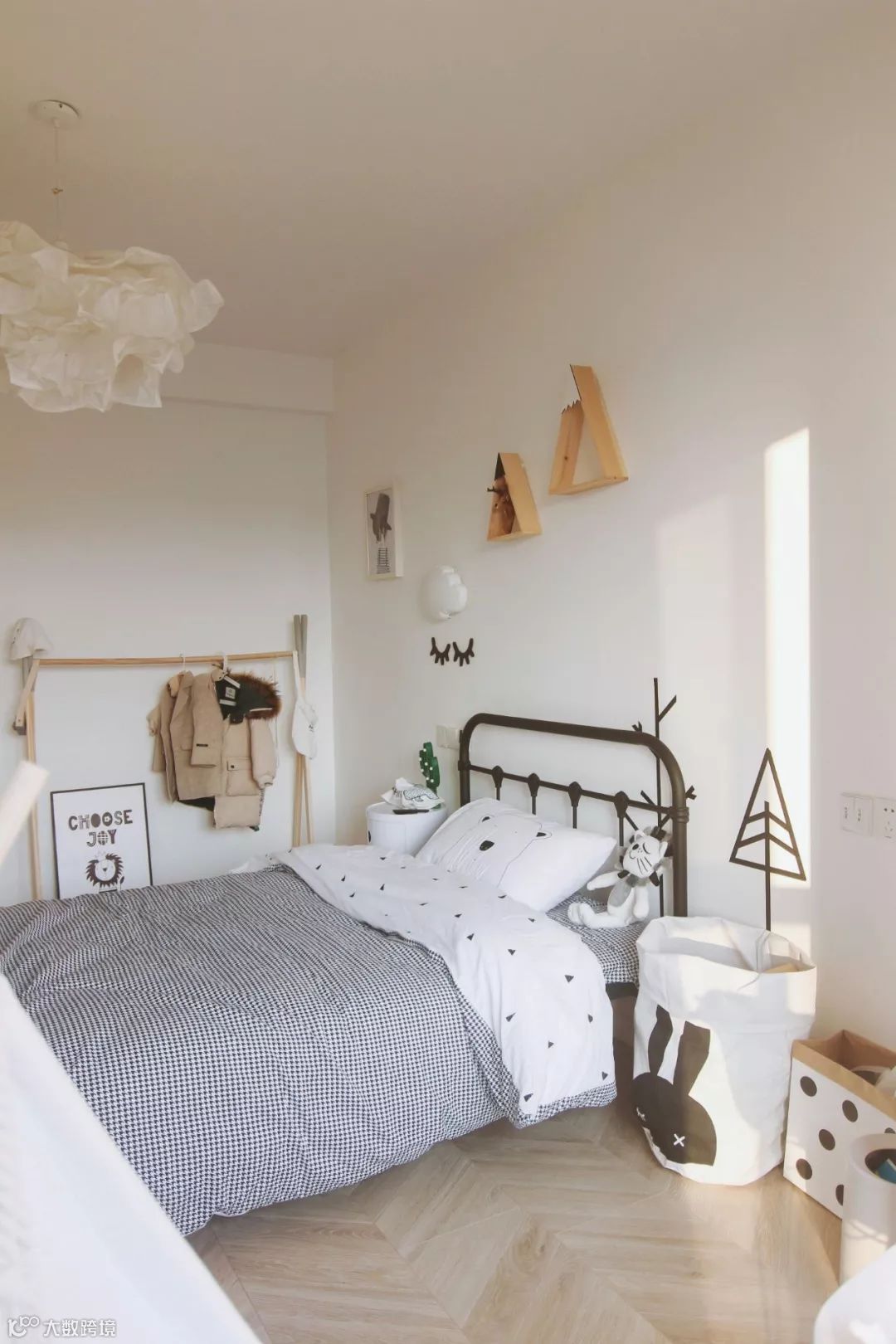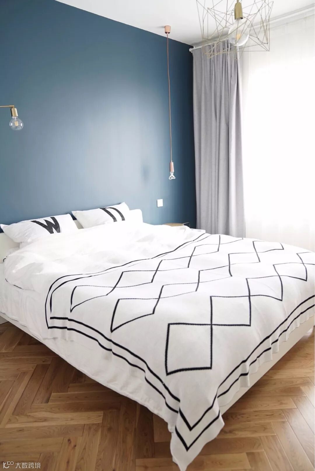 如果觉得工字铺没新意,也可以采取人字铺的拼接方式,让常规的木地板也铺贴出充满创意视觉感的效果;不过采用这种铺贴方式的木地板施工,边角处的收口相对难度较大,要找有经验的工人才行。
